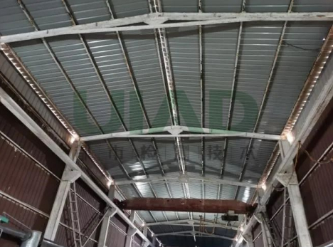 厂房增加光伏板意味着厂房屋面载荷极大增加,因此在安装光伏设备前首先要考虑房屋结构的安全性,保证屋面的承载能力能满足要求。根据国家现行的建筑结构荷载规范要求,结合现场实际情况,委托专业的房屋安全鉴定机构对工厂进行屋面承载力检测,如有不满足规范要求的,必须对房屋进行加固处理。