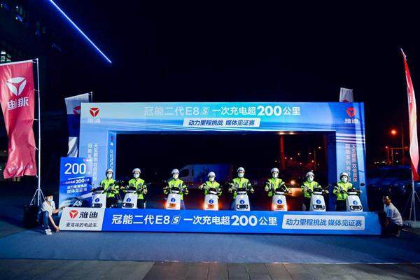 定位高端的雅迪冠能系列,本身主打的就是先进的能效管理系统,而雅迪冠能二代E8S的续航里程更是直接飙升至超200公里,此项备受行业瞩目的创新表现,也接受了官方严格“检阅”。就在今年4月中旬,雅迪携冠能二代E8S在国家轻型电动车及电池产品检验检测中心、江苏省无锡市江南公证处以及多家权威媒体及全网超百万网友的共同见证下,车队历经砂石土路等多种路况地形,成功完成一次充电超200公里的“不可能任务”。
