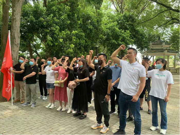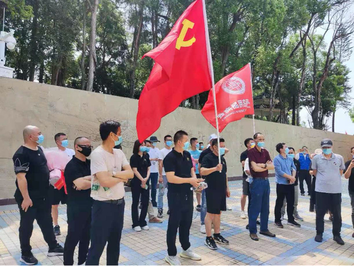 参观期间,在中共深圳市酒店用品商会党支部书记刘兰辉同志、深圳市酒店用品商会常务副会长邓联云先生向土洋革命烈士纪念碑献鲜花、缅怀革命先烈后,刘兰辉书记带领会员代表重温入党誓词。