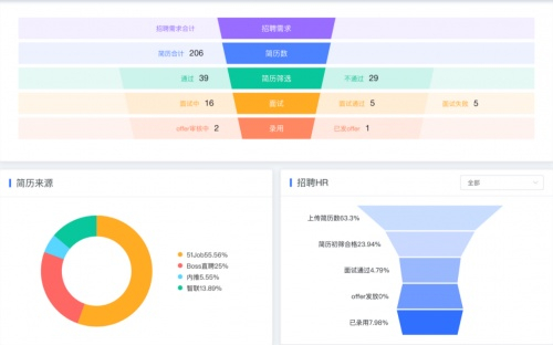 通过在线应聘者活沟通和面试、智能人才库录入、在线面试反馈等方面的可视化招聘流程管理,为整个招聘流程提供了的整体视图分析,有助于优化招聘渠道。
