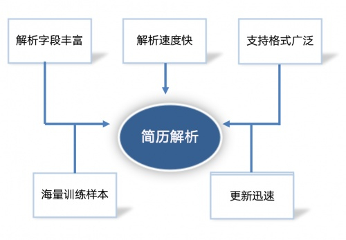 基于计算机技术,通过语言学结构分析文本,精准提取电子简历中的关键信息,包括非结构性数据;支持简历格式多样化;基于多类型的稳定精准解析;输出为统一格式,便于后续管理