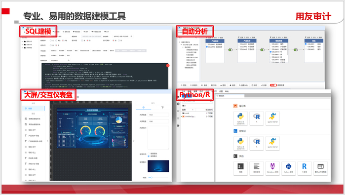 大数据时代,如何能将审计工作从“经验驱动”变为“数据驱动”,周建婕表示数据分析系统是为企业、行政事业单位的内部审计人员及领导提供的一款集数据采集、数据建模、数据分析及指标监控预警于一体的数据审计产品。系统支持离线与在线数据采集,实现业财数据关联与集中管理;系统提供拖拽点选式建模工具,方便审计业务人员自助分析;系统也提供SQL建模工具,可以利用SQL创建分析模型,系统内置10余项查询分析功能及覆盖预算、资金、资产、往来、收支等100余个分析模型,实现审计经验的沉淀;另外,系统提供大屏/交互仪表盘,创建各类炫酷的大屏效果,方便决策分析。系统支持创建预警指标及模型,自动将查询出的数据推送给审计人员,便于直接关注风险疑点,确定审计重点,提供审计效率,提高审计工作质量;系统支持生成风险监控报告,对各个单位的风险问题进行集中反映,方便领导监督和决策。