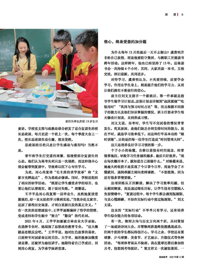 在虞贵明看来,复读生来自不同的学校,想要确立正确的信仰,只有一种途径,那就是思想政治教育。