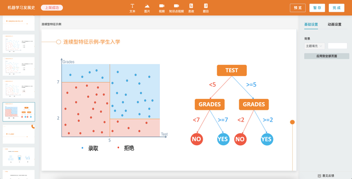 平台配有教研标准化课件、案例及各地教师授课优秀课件、案例等。老师们可以结合丰富的优质资源在线快速组合、自由调整制作课件。所有课件及其资源留传平台,总部教研老师将审核各地老师对课件的个性化调整部分提炼优质内容,实时将优质内容迭代更新至课程体系中,形成标准化课件。