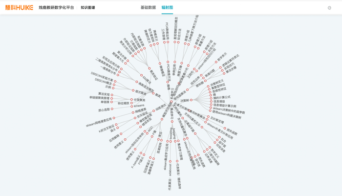 基于课程的知识点概念建立层级关系、关联关系、顺序关系构成课程知识点图谱。利用这个图谱,对学生呈现可视化的知识网络图一目了然,帮助学生轻松构建知识体系,查阅知识要点,发现知识点之间的关联,帮助学生做总结沉淀,消灭知识盲区。