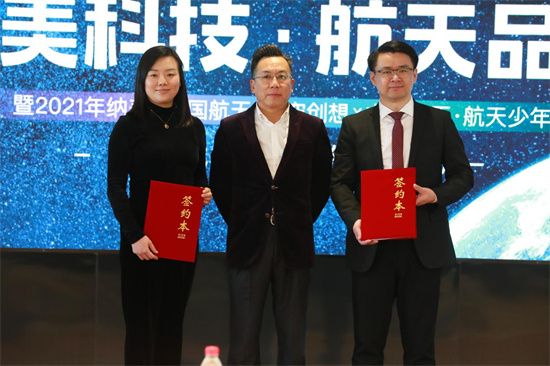 为致敬航天精神,弘扬航天文化。杭州纳美智康科技有限公司携手中国航天科技国际交流中心,正式官宣纳美与中国航天·太空创想和航天少年品牌达成合作,大国品牌(北京)文化传媒有限公司主席签约仪式。