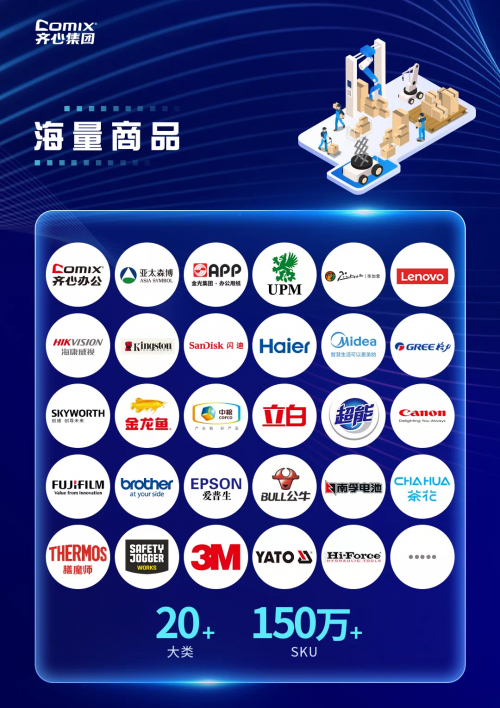 在产品供应链能力上,齐心集团结合市场变化和客户需求,已集成20+大类,150万+商品,可为客户提供办公行政物资、MRO物资、员工福利品、营销物料等在内的多场景、多系列产品体系。同时,通过严格的供应商管理制度及产品质量管控方案,为客户提供高质量、高性价比产品。
