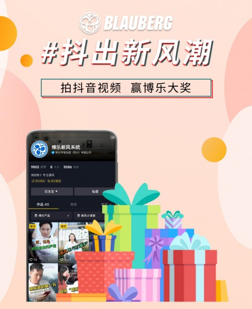 关注 @博乐新风系统 抖音官方账号,在活动时间内完成抖音视频拍摄以及上传拍摄指定内容的新风视频,视频发布时带上标签 #抖出新风潮 ,并@博乐新风系统 (以确保我们能看到您的视频哦)