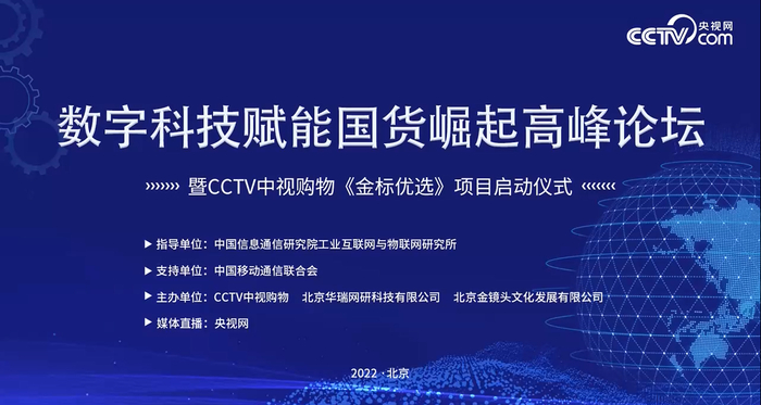 4月20日,“数字科技赋能国货崛起高峰论坛”暨CCTV中视购物《金标优选》项目启动仪式在京召开。本次活动由中国信通院工业互联网与物联网所指导,CCTV中视购物有限公司、北京华瑞网研科技有限公司、北京金镜头文化发展有限公司联合主办。活动通过CCTV央视网平台全程线上同步直播。