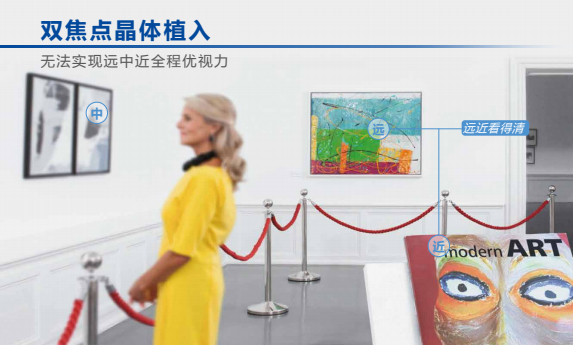 双焦点人工晶体只解决看远及看中,或者看远及看近。有些中距离视力范围内,无法看电脑或者做家务等等,影响生活质量。有些近距离视力范围内,仍需戴镜,并无法做到完全摘镜。