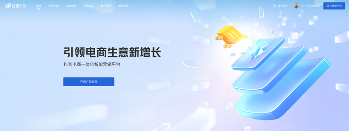 巨量千川官方网站通过「产品价值」、「适用场景」、「产品版本」、「客户案例」、「服务支持」五大核心功能模块,让商家、达人全面走进“巨量千川”,巨量千川稳健开启营销新道路。