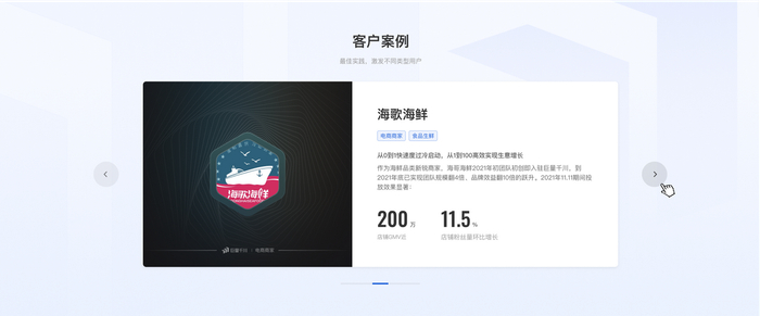 为了更好呈现通过巨量千川获得生意增长的优秀商家案例,也为了给更多巨量千川用户提供投放的决策参考和经验分享,官网设置「客户案例」功能模块,全面展现涵盖头部商家、中小商家、电商达人等的投放案例,让不同生意阶段的广告主均能从中有所获益。