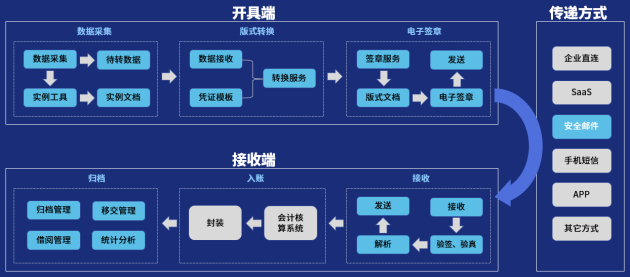 3.端到端解决方案:提供成熟的端到端解决方案,满足电子凭证生成、接收、验签、解析、归档的生命周期安全管控,助力试点单位快速部署完成任务。