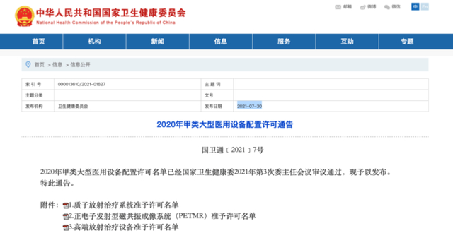 为保证医疗质量,平安健康(检测)中心购置了国内外最先进的PET/CT、MR、CT设备。据国家卫健委2021年7月30日发布的《2020年甲类大型医用设备配置许可通告》(国卫通[2021]7号)显示,共有35家医疗机构“上榜”正电子发射型磁共振成像系统(PET-MR)准予许可名单。其中上海平安好医医学影像诊断有限公司(上海平安健康(检测)中心)赫然在列,成为全国唯一一家正式获PET-MR证的第三方医疗机构。