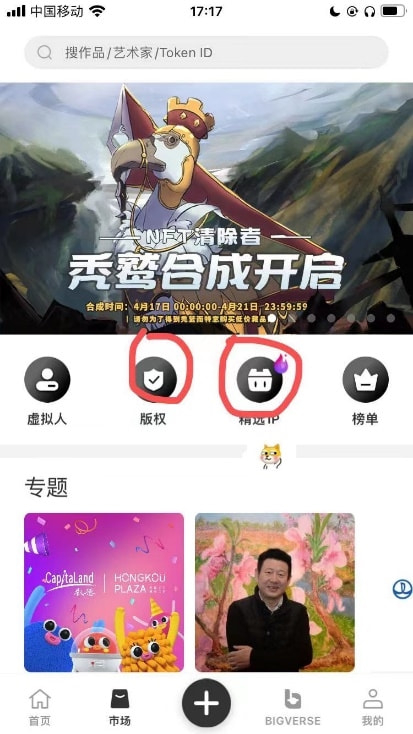 这里就开始分创作者和藏家了,如果您有优质的作品,可以通过上传功能开始自己NFT之旅,藏家的话可以略过下面的步骤。