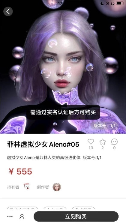 实名认证之后就可以购买了,介里久财大帝财力有限,就不展示支付宝界面了。当然,购买也应该像主页提醒的一样,是因为“喜爱”购买,而不是“投资”。