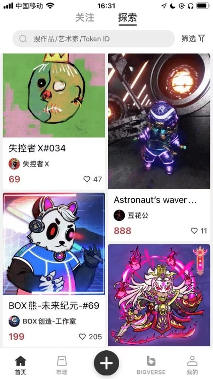 第五步:如果你跟久财大帝一样,想做个老收藏家,可以在探索页接着刷刷刷。这里久财大帝推荐你看一下首页的好作品和精选IP里的优质作品,精选IP都是有非常不错保障的作品,当然还可以挑选一些品牌认证的作者。