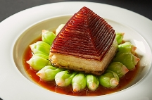 杭州经典菜肴,以为基础的创新之作,选用厚薄均匀、肥瘦相间的五花肉,辅以杭州特产竹笋,制成宝塔形状,酥而不烂,油而不腻,保留了东坡肉原有风味的同时更具备美学价值。金牌扣肉曾获中国烹饪世界大赛金牌及全国大赛金牌,并被国内贸易部认定为“中国名菜”,因得“金牌”二字。