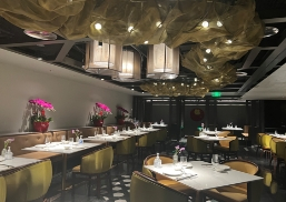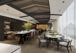 更难得的是,“景er”真正做到了店如其名,餐厅设计挖掘历史建筑之美学,宽敞的落地窗将著名的北京协和医学院中式古典建筑的琉璃屋顶尽收眼底,自成一景;同时,餐厅吊顶也融入了中式风格的坡面设计,与窗外景致相得益彰。而作为优雅摩登的食享空间,餐厅同样满足举办私人派对的需求,餐厅一侧可封闭使用,变身独立的用餐区域。