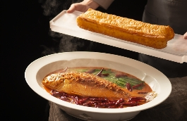 起源于800多年前的南宋时期,风韵尤然。采用北大西洋寒冷海域的银鳕鱼,去皮烤制金黄,锁住水分与营养;鲫鱼和黑鱼熬制的鱼汤作为汤底,辅之腐竹丝,胡萝卜丝,黑木耳丝,黄瓜丝。鱼肉嫩鲜美,羹口感细腻,成就匠心之作。