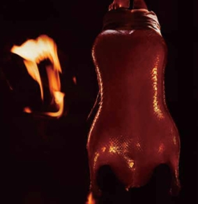 精选鱼虾水草为食、重量在4-5斤的正宗北京填鸭,肥瘦相宜,经过枣木慢火烤制60-70分钟,晶莹剔透的鸭皮色泽诱人,鲜嫩的鸭肉带着淡淡的果木香味儿,咬破轻薄如纱的面皮,唇齿生香,酱汁咸甜,黄瓜清爽,葱丝微辣,配合得天衣无缝。