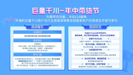 年年都在追求创意、变化和精进的电商节活动——抖音618好物节,已经逐步构建起由平台福利、特色玩法、排位赛 为主要元素的活动玩法体系。除了红包等常规动作,本次活动的“巨量千川-年中带货节”以做任务、闯关、冲榜、签到、大赏等 多种形式吸引了不少目光,内容涉及商家和达人两大圈层,以竞赛玩法激发“胜负欲”,以新客大礼包、百亿带货流量、1分钱抢课、百万奖池、千万流量等多重重磅福利凝聚“关注度”,为助力更多商家和达人销量冲刺做足前期谋划,赢在先招。