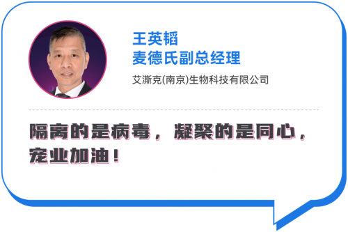 海正动保品牌宠物业务总监王俊说,我们所有人在面临灾难和困难的时候,我觉得其实被打败的不是这个灾难,而是我们自己。所以我想作为一个好的企业,我们一定要努力的塑造我们自己的品格,承担起我们该承担的责任,然后要为我们的客户和客户的行业创造更多的价值,同时承担我们应有的社会责任,我们一定要有积极乐观的心态去看待这个事情,我们用更长时间的维度来看待这个事情,相信未来一定是非常美好,相信大家一定会渡过难关。