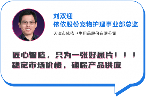 依依股份宠物护理事业部总监刘双迎说,在这个时候大家最希望能做的就是资源整合,比方说我们最擅长的就是生产的规模,但是我们在物流、渠道、包括类似阿闻小程序对c端这一块,没有优势,这个时候我们怎么共同把眼前的事情解决好,最简单的四个字就是——“互帮互助”,我们共同把这件事做好,让宠物用上好尿片,让宠主安心。