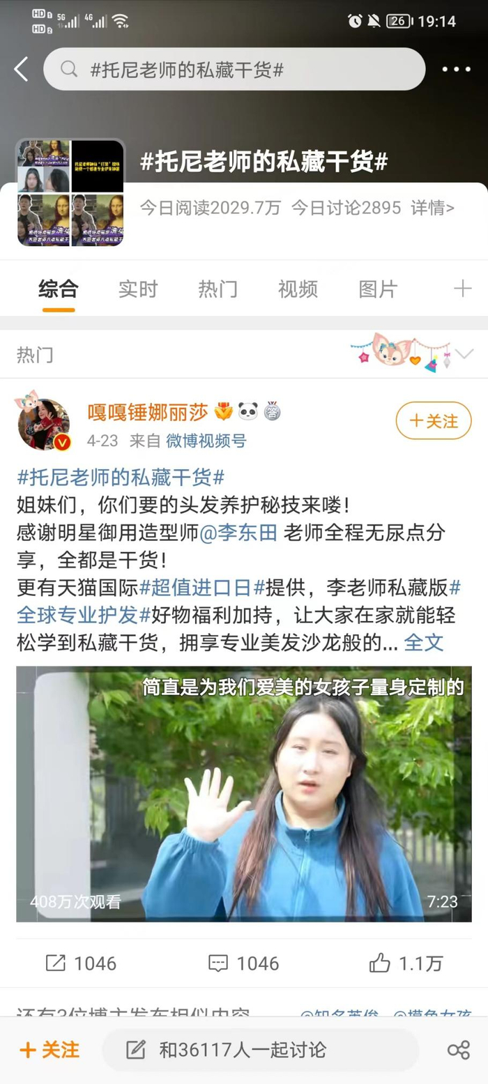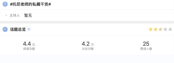 如今,活动主话题#托尼老师的私藏干货#仅在微博线话题阅读已经超过4.4亿次,相当于全国每4个人中,就有一位在线“拜师学艺”了。