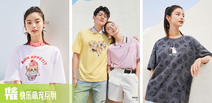 以“穿什么就是什么”为出发点,森马的每一次IP联名,都基于对年轻人多元生活形态的洞察。在他们之中,有人热衷于收集知识干货,有人积极推行国风文化,有人对小动物和萌宠毫无抵抗力,有人沉浸在二次元世界自由穿梭……森马以T恤为载体,联合各具代表性的IP,为不同兴趣圈层勾勒出生动的形象符号,有趣同时感召力十足。联名系列包括与独立设计师蒋云JIANG.YUN联名打造什么TEE×问号系列、以插画师叶露盈的作品《洛神赋》为灵感创作的什么TEE×洛神赋系列、携手个人救助基地上海领养之家以及当代跨媒体艺术家朱敬一、当代新水墨艺术家李知弥、东西方文化交融品牌FMACM共同打造什么TEE×快乐萌宠系列等等。