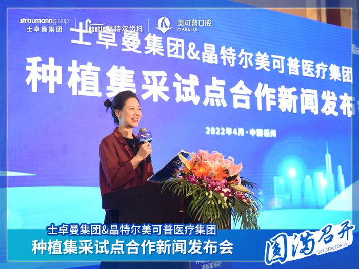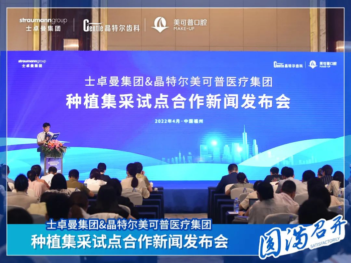 2022年4月26日,士卓曼集团&晶特尔美可普医疗集团种植集采试点合作新闻发布会在福州凯宾斯基大酒店正式召开。本次会议聚焦国家种植集采政策,会上宣布:晶特尔美可普医疗集团成为士卓曼集团福建省内首家种植集采试点合作单位。本次种植集采新闻发布会受到各界的广泛关注,多家新闻媒体共同报道。