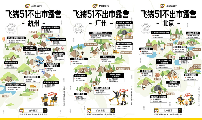 飞猪推出“2小时露营圈”小白级攻略,上线杭州、广州、北京露营地图