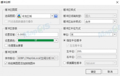 缓冲分析可根据空间数据库中的点、线、面自动地在某区域周围建立一定宽度的多边形区域。通常用于确定地理空间目标的影响范围或服务范围。