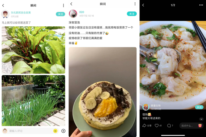 在#疫情下的的邻里关系话题下,还有更多人分享了近期来自邻里间的关爱与温暖:有人会在邻居小朋友没蛋糕过生日时,亲手做一个酸奶蛋糕;有人因邻居送来的西瓜和馒头,在居家的慌乱中感受到美好;也有人特意关照起了楼里的独居老人,做了任何吃食都会捎去一份。