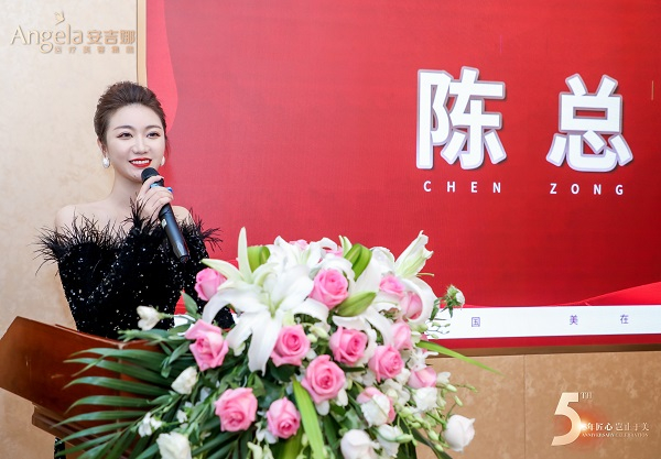 在庆典现场,王晓女士首先做了致辞发言。她代表安吉娜向出席庆典活动的嘉宾表示热烈的欢迎和诚挚的感谢,并进一步指出安吉娜在行业之中经受住了疫情常态化的考验,并深刻地体会到唯有规范执业、与时俱进,回报顾客和社会才能获得大众的认可和信赖。这也是安吉娜长久发展的驱动力。