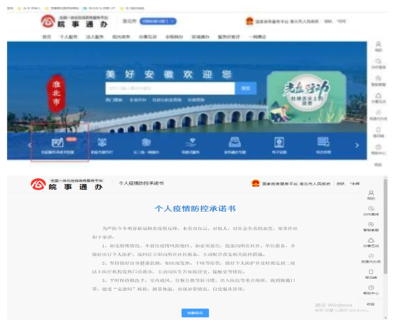 如此一来,社区工作者无需挨家挨户上门跑腿,市民们只需在电脑端登录安徽政务服务网淮北分厅,点点鼠标就能签署《疫情防控承诺书》,零跑腿、零接触,不仅效率提高很多,也给疫情防控增加了一道安全防线。