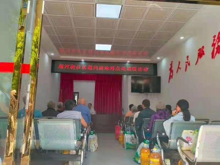 这天上午,逸尚联合社区乐山雪儿团队的志愿者满载着社区成员们自发捐赠的爱心物资,来到了位于顺河社区党群服务中心的活动现场。志愿者们按照安排分成5个慰问小组,走访了当地的低保户、高龄困难老人,并为他们送去了大米、面粉、牛奶、花生油以及床上四件套、棉被、衣服等爱心物资。