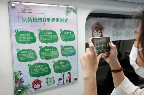 青岛推出国内首辆“互联网+全民义务植树”地铁列车