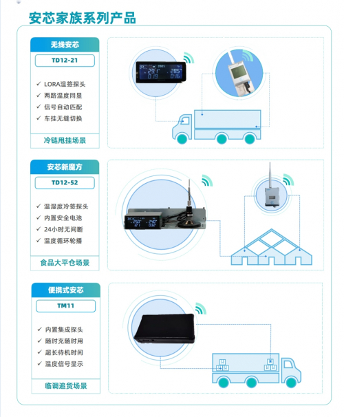 本次新品包括适用于食品大平仓的安芯新魔方、适用于冷链甩挂车的无线安芯、还有适用于冷链零担场景的便携式安芯。整个安芯系列的产品都延续了工业化的精密设计,同时根据使用场景的不同进行针对性的优化和升级。