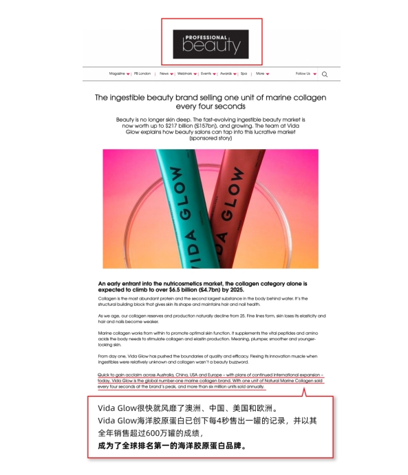 Vida Glow海洋胶原蛋白热度席卷全球,现象级口服美容品牌获认证