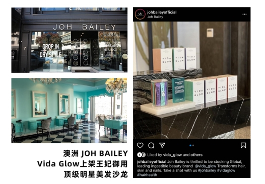 作为澳洲国民口服美容品牌,Vida Glow已正式入驻高端商场David Jones、Myer和全球最大的免税商场海内曼免税店,同时还与王妃御用顶奢美发沙龙Joh Bailey等多家高端美容、医美机构保持合作,Vida Glow海洋胶原蛋白更已成为澳洲明星、名流最为钟爱的日常口服美容方案。