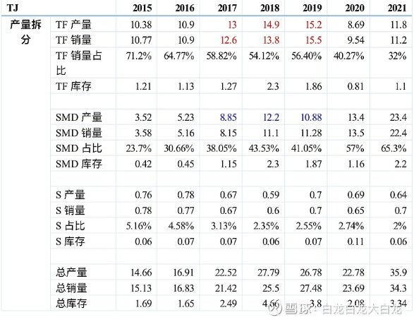 PS:2021年,TJ的扩产方向主要围绕KHz,不过缩减了TF的产能(单价1毛多),提升了SMD小尺寸的产能(单价7毛多),相信毛利率会更高,因此随着21年KHz SMD快速扩产,产品结果变化明显,毛利率明显提升。