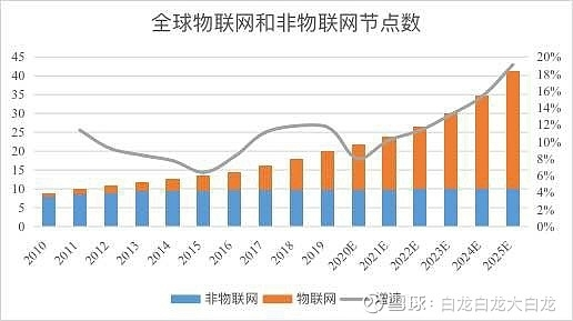 先看增速怎么拍。举个例子,如下图,2020年全球节点数中,物联网节点数占比约1半,则可以得出结论,以晶振用量视角来看,因为物联网设备的平均用量要比普通电子设备的更多,所以物联网的晶振用量占比要高于50%。假设物联网的晶振用量占比60%,物联网增速25%,则单单靠物联网增速带来的晶振增速就有15%。