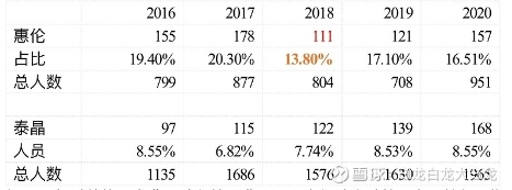 2017年之前,惠伦的研发团队数量是要明显领先于泰晶,但是2018年研发团队减员接近40%,这是极其反常的现象,但是我翻阅了2018年年报并未解释这个原因,也不知道是口径问题还是团队离职问题。这个有知道的朋友,可以提示一下。