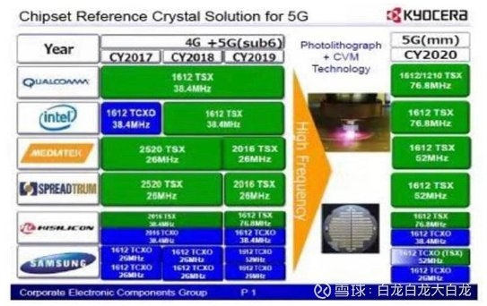 但是TCXO的长逻辑有个问题,就是绝大多数芯片方案商,逐渐开始用热敏TSX(一种精度略低于TC的无源晶振)来替代TCXO。下图也可以看出,芯片平台厂商(不考虑海思)在5G时代,除了三星和Intel,其他厂商逐渐开始转向TSX(热敏),毫米波时代,基本只有三星一家在用TCXO,由于这块市场相对不大,我确实研究不深。