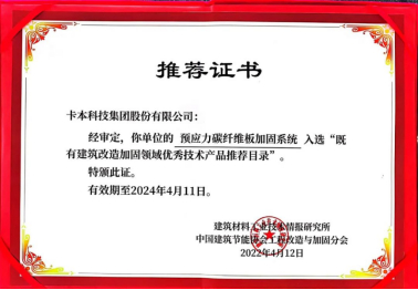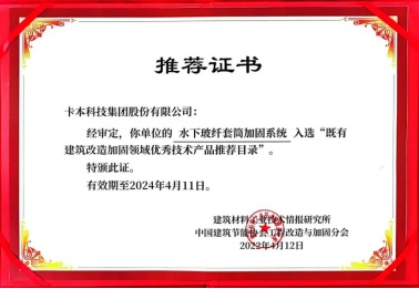 卡本产品入选“既有建筑改造加固领域优秀技术产品推荐目录”