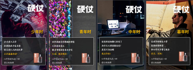 硬仗品牌表示目前主要聚焦人群为上班族,并将“解压”“欢庆”“鼓励”“安慰”等不同情绪维度的话题点为延伸,通过同一个具有仪式感的动作——“喝硬仗(酒)”,最终感受都指向了同一个终点即“美好”,这种美好包括欢愉身心、点燃希望、重获温暖和力量等状态,这些美好状态又共同服务于“美好生活”。