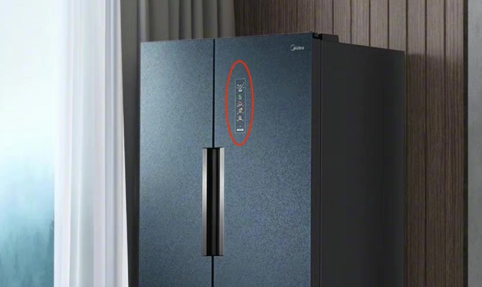 「X」颜值的提升: 从官方公布的设计图看,微晶X沿袭了美的冰箱自然极简的设计理念,在冰箱的漆面做了升级。或许是用了更高级的工艺和表面涂层,它看起来很像高级的“深空蓝”的星墨,又似乎更像中国传统色里的“帝释青”,颇有“霜余远水呈天碧,雨过遥空现帝青”的国风写意画的味道。冰箱前脸的操作界面有了变化和提升,红圈标出的显示屏由2021款的黑白升级为彩色。