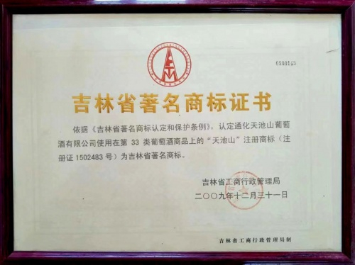 “天池山”注册商标为吉林省著名商标,公司法人王若鹏是(县级)非物质文化遗产(葡萄酒酿造技艺)传承人。