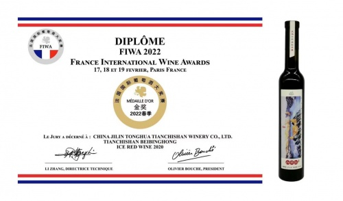 2022年生产的“北冰红冰酒”获得“FIWA法国国际葡萄酒大奖赛金奖”;